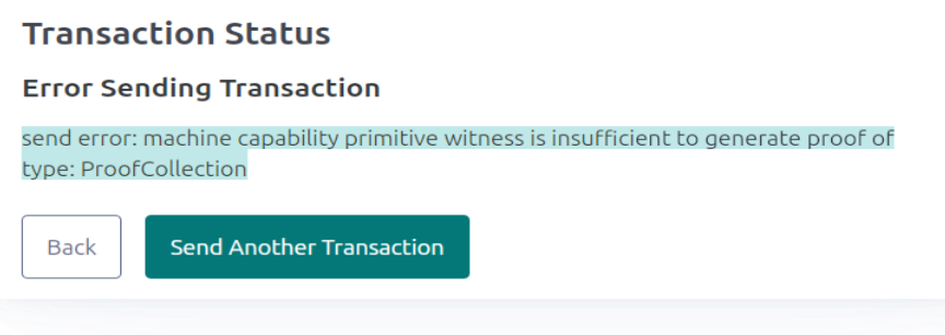 What does this error mean and can it be resolved? I am running the proton wallet on an Ubuntu VM. I am attempting to send funds.