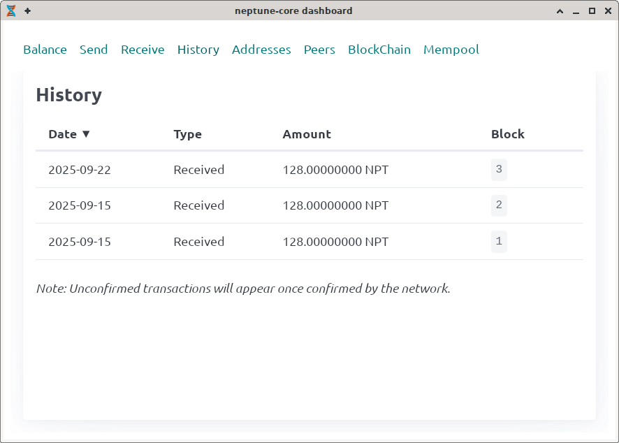 neptune-proton is a GUI dashboard/wallet for neptune-core. It does not manage its own keys, but rather provides a graphical interface to the wallet that is built into neptune-core. It is a GUI alternative to the neptune-dashboard TUI that comes bundled with neptune-core.
